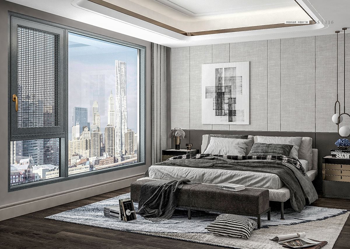 斷橋鋁平開窗因其分格的靈活性比較大,可以將其做出任何的線條的立面效果,且對(duì)于大分格的落地窗而言,開啟扇只占整窗的很小一部分,故其較適用于對(duì)建筑物整體效果要求較嚴(yán)密的高檔樓盤,特別符合建筑師所追求的大分格、寬敞明亮、通透效果好、外觀協(xié)調(diào)流暢的建筑。
