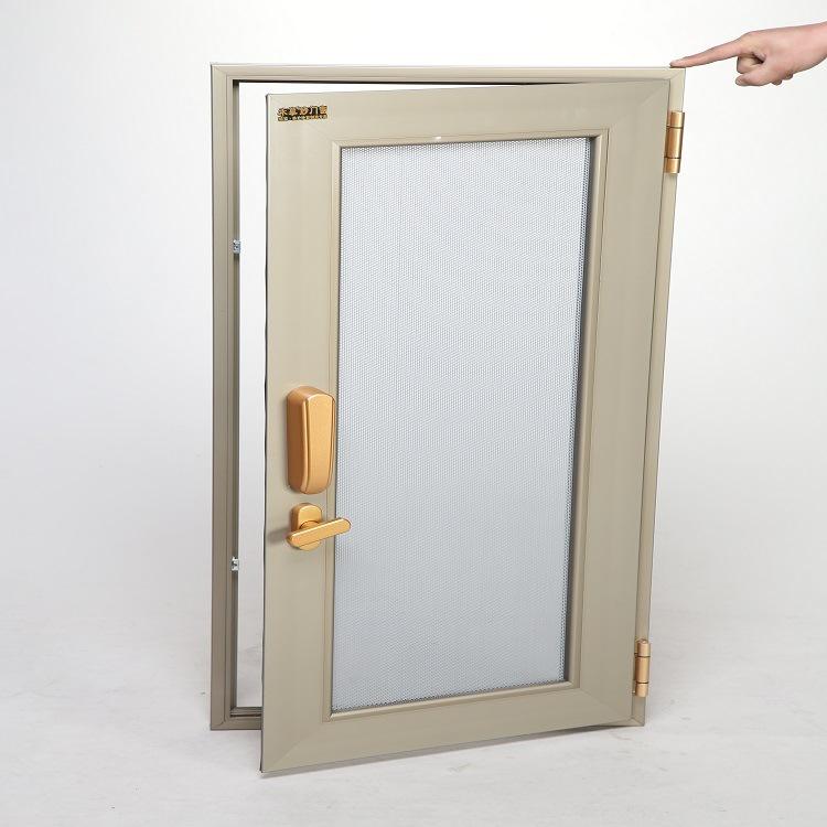 6. 五金件:配備專用的金色合頁、口袋鎖五金配件,保證門窗與金剛紗窗同時開啟關閉。