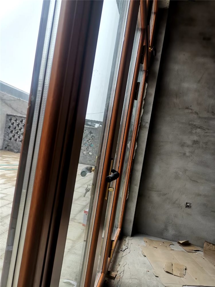 順義斷橋鋁門窗、順義托田斷橋鋁合金門窗、托田木紋色斷橋窗、托田古銅拉絲斷橋鋁合金門窗定制安裝廠家-北京北方瑞達(dá)金屬門窗有限公司。此次項(xiàng)目位于順義北務(wù)鎮(zhèn)倉上村新建房屋加工定制安裝斷橋鋁合金門窗。門窗采用托田外古銅色內(nèi)木紋斷橋鋁合金型材加工制作而成,配置三層中空鋼化玻璃、好博外平開五金配件等優(yōu)質(zhì)產(chǎn)品。現(xiàn)場施工效果如圖: