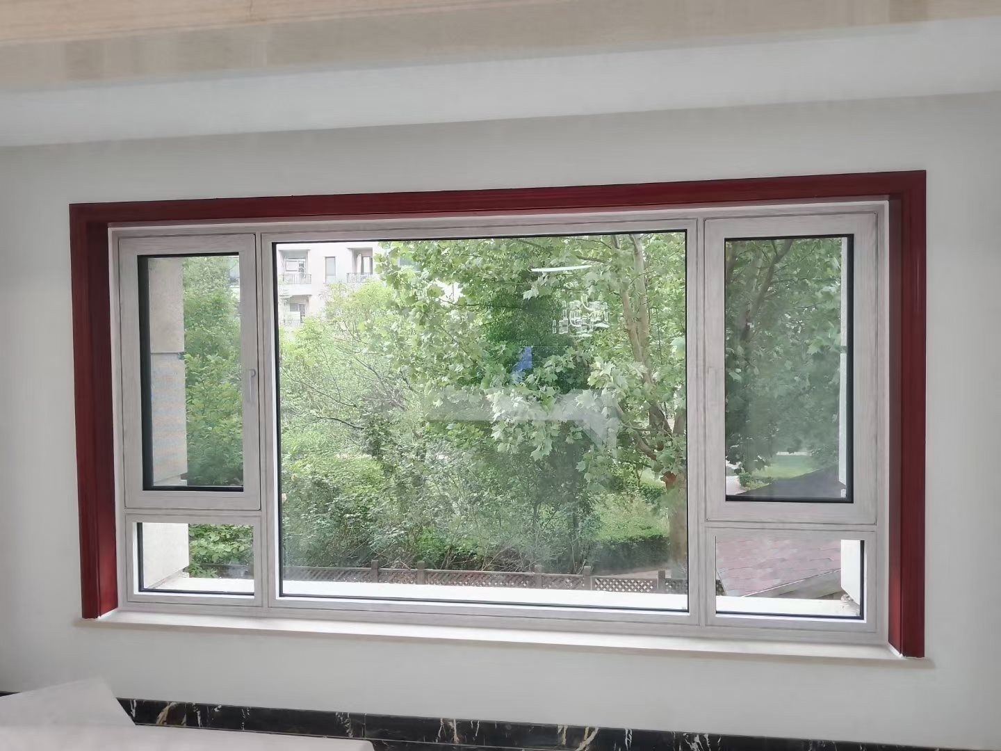 斷橋鋁系統(tǒng)窗工藝:采用銷釘注膠工藝,隱藏式排水設(shè)計,多腔體尼龍中空隔熱條,天賞軟硬共擠汽車級一體折彎復合膠條,排水系統(tǒng)紗窗設(shè)計,高檔金屬安全護角,注膠組角鋼片,注膠中挺擋水板,防塵皮條等諸多工藝。